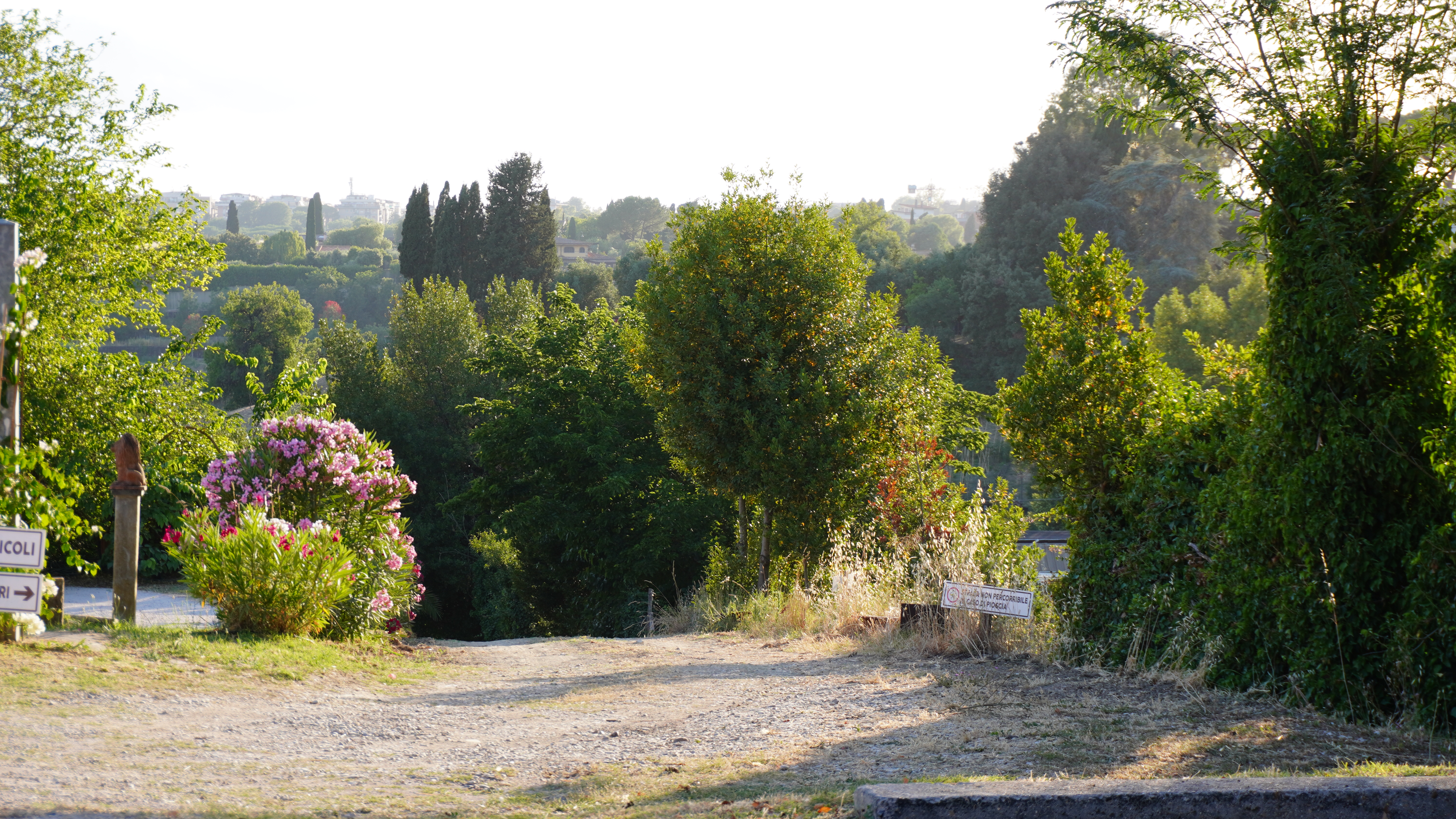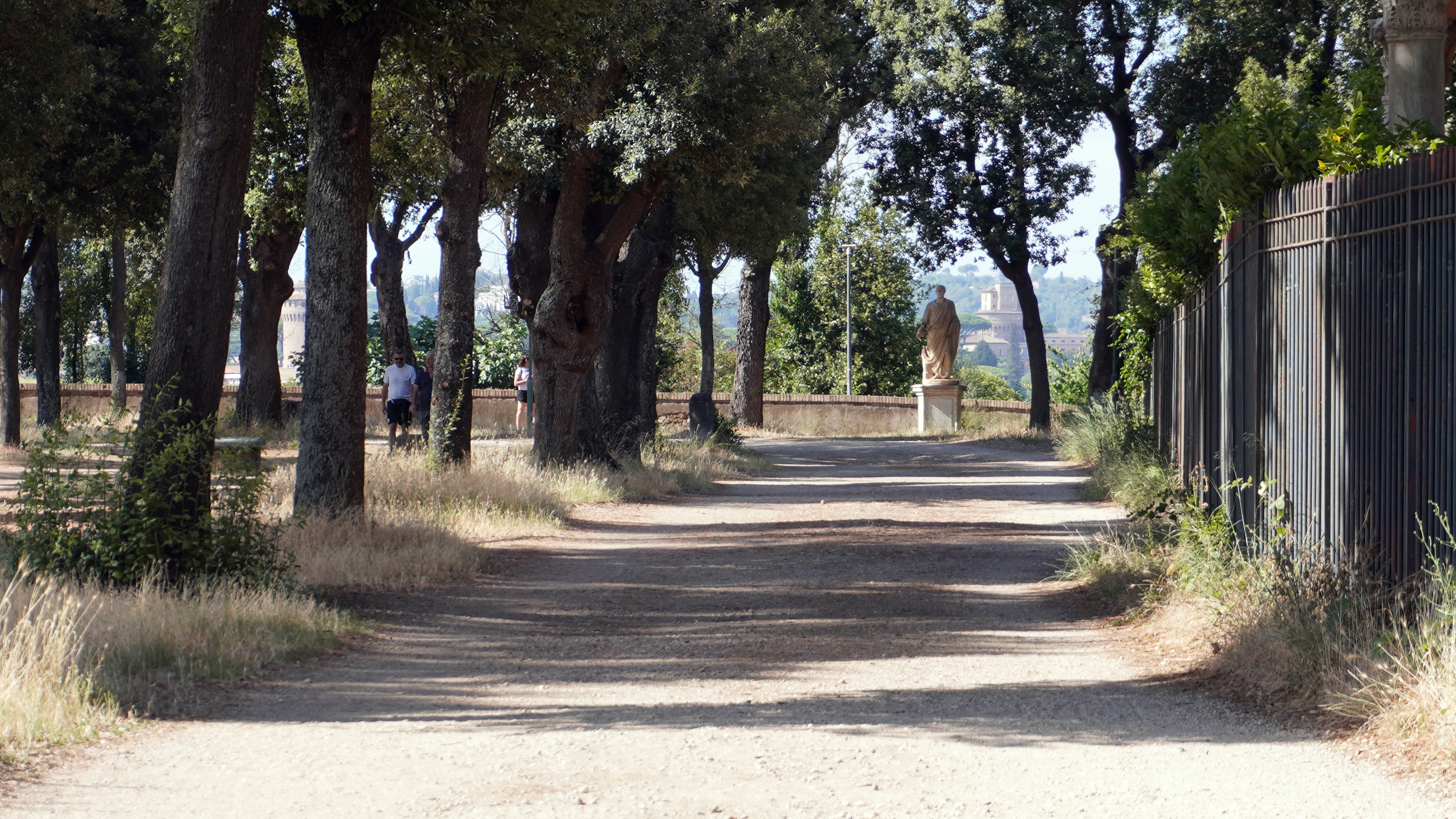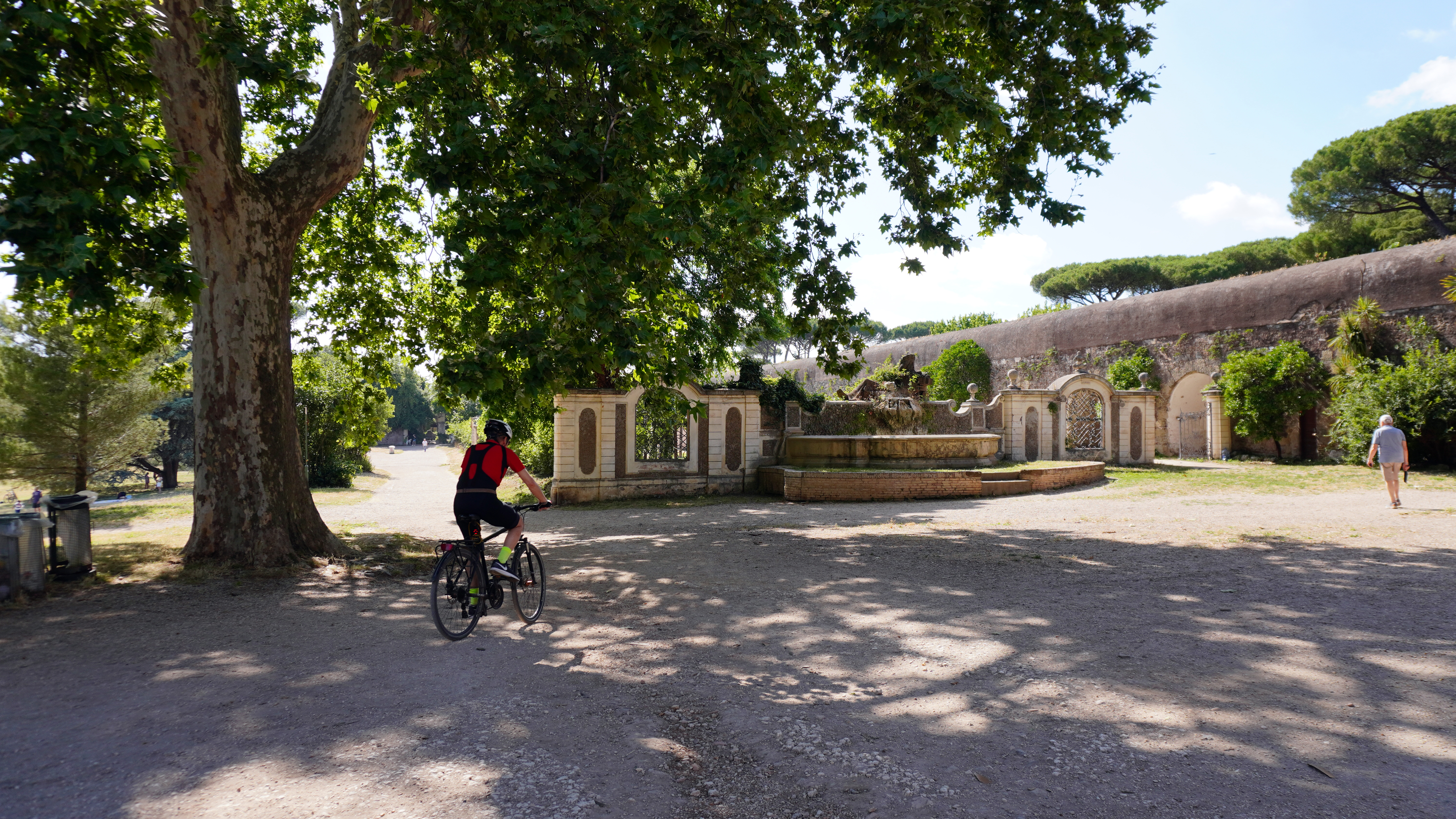 Cât am tras de trollerul care cântărea aproape 20 de kile (cu încă vreo 10 atârnate de umeri) pe panta asta constantă dintr-un capăt în altul al aleei, n-am zărit roată de biciclist, scuter sau alte asemenea, semn că blocatoarele de la capete funcționează. Le-am mai văzut apoi și în parcuri, cu aceleași efecte – nu te zboară nimeni pe alee dacă nu ești atent. (Știu, se simte frustrarea de pieton agasat de bicicliști needucați.) Și nu puteam să nu constat, cu invidia la cote sensibile, că se poate întreține o zonă verde într-un mod civilizat (să nu zic chiar frumos!) și în fundul unei gări, la marginea orașului. Poate o fi o margine mai răsărită, n-am apucat să mă documentez despre periferiile Romei și nici să le prea văd.