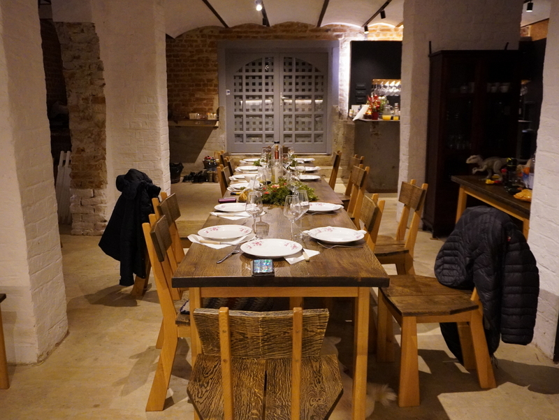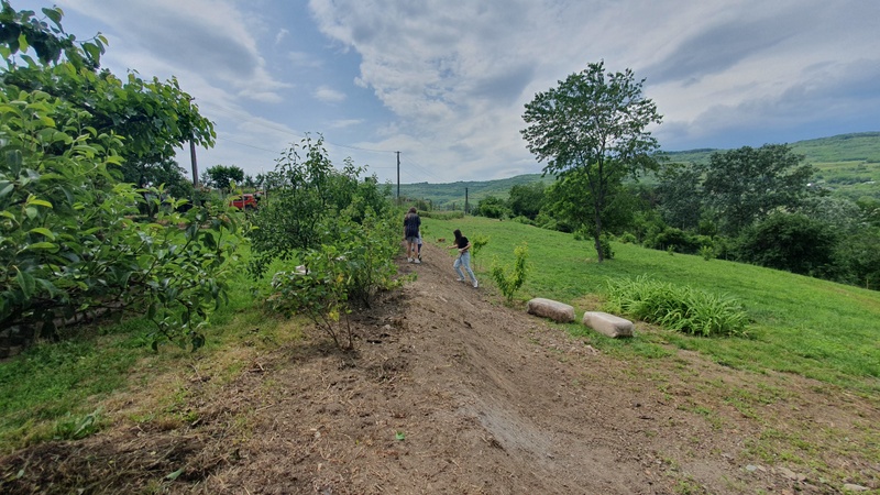 Nouă ne-a plăcut foarte mult. Gazda ne-a primit, ne-a făcut un tur generos al casei și al curții, și-apoi a plecat. Pentru aproape o zi am avut tot conacul și curtea doar pentru noi – restul oaspeților nu ajunseseră încă, sau erau pe traseele din zonă. Am mers cu trei copii, pe care am reușit să-i ținem afară o după-amiază întreagă fără să le facem program special – fiecare ce-a avut chef. Eu am citit pe-o buturugă despre București (deja lucram la PUG și încă mai speram să fac nu știu ce studiu pe chestii istorico-arheologice); Mircea probabil s-a jucat pe telefon (sau a citit și el?), fetele-au bârfit cu telefoanele lipite de mâini, tolănite-n hamac, iar Zeno s-a ocupat cu bruiaje pe toate fronturile – de la hăituit buburuze pe scoarța copacilor, până la băi cu iarbă aruncată pe fete, o maaare distracție! Toți ne-am bucurat de aer curat, de verde (măcar în fundal), de umbra copacilor, de hamace, de gâze și de plimbări pe cărări cu bălării. Până spre seară s-au ocupat toate camerele și-am servit toți, împreună cu gazda, o cină copioasă în jurul unei mese de pomină (o vedeți în calupul de foto de mai jos). Mâncare pregătită de oameni din sat, cu ingrediente locale, degustare de vin și o atmosferă deschisă și prietenoasă din partea tuturor, deși mulți nu ne cunoșteam. Totul a picat… uns! În plus, eu m-am bucurat foarte mult să văd o casă istorică pe mâini bune, chiar și fără implicarea unor specialiști de profil. Dorința de a păstra, de recondiționa dacă e cazul, atenția la detalii și materiale adecvate se văd la fiecare colț al casei, înăuntru sau afară. Nu e ireproșabil, perfect nu există și nici nu vreau să deschid vreo listuță de exemple cu ce “nu e bine”; în ansamblu, este foarte bine!
